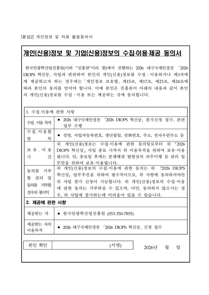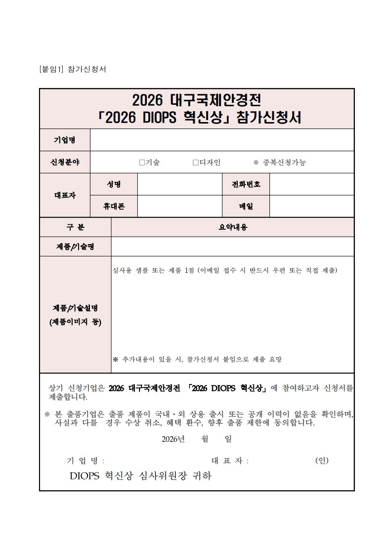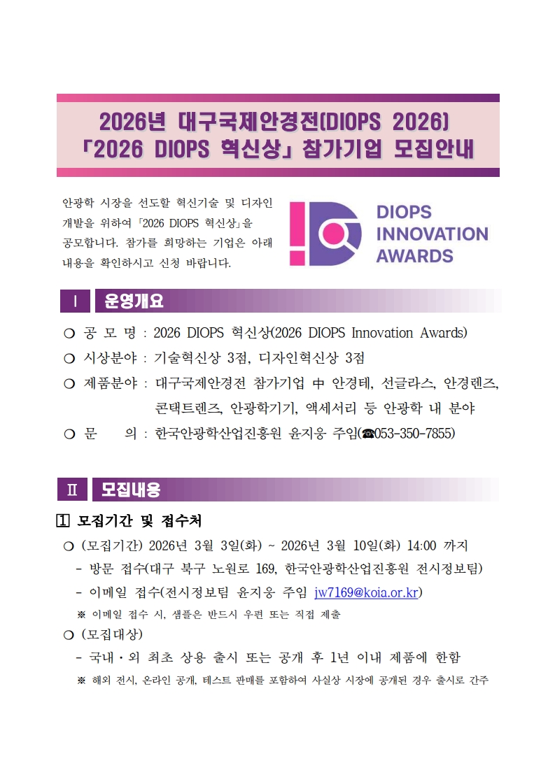 2026년 대구국제안경전(DIOPS 2026) 「2026 DIOPS 혁신상」참가기업 모집안내 (2026 DIOPS Innovation Awards Official Call for Entries) 2026-02-03 16:51:33 |