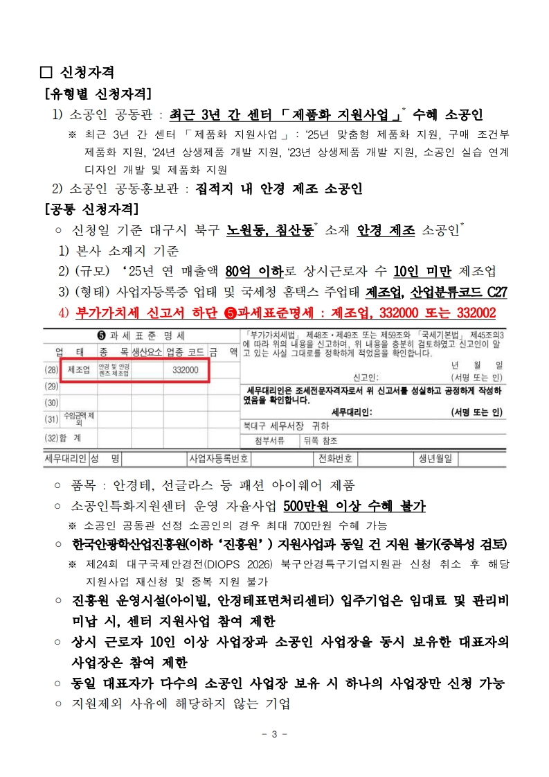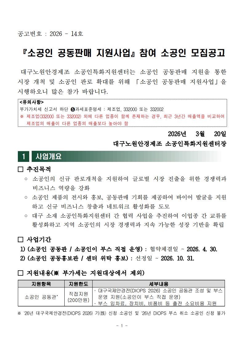 2026년 소공인특화지원센터 「소공인 공동판매 지원사업」 참여 소공인 모집공고